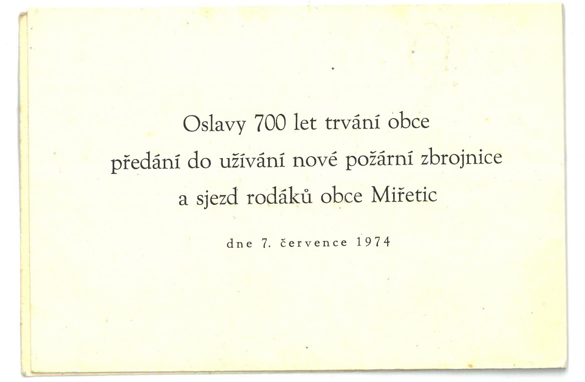 Tyto historické fotografie, předané obci při oslavách 750 let od první písemné zmínky o Miřeticích, nejsou jen obrázky, jsou to příběhy, které vyprávějí o životě našich předků, o tradicích, které nás provázely, i o proměnách, které Miřetice zažily.